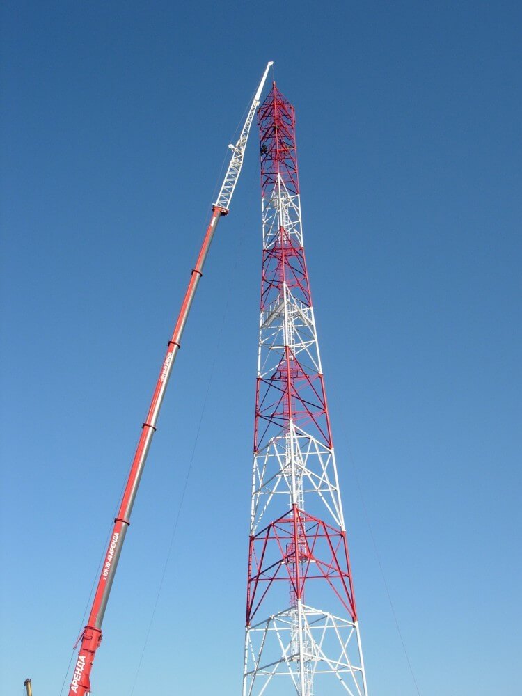 Фото изготовленных нашим заводом прожекторных мачт ПМС-28,0 в Южно-Сахалинске: