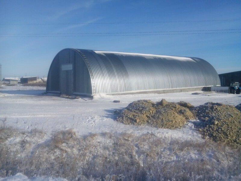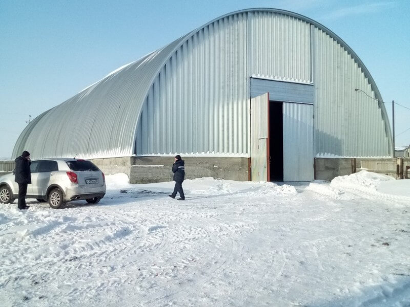 Строительство бескаркасного арочного ангара 12х30 на готовом фундаменте заказчика в Южно-Сахалинске